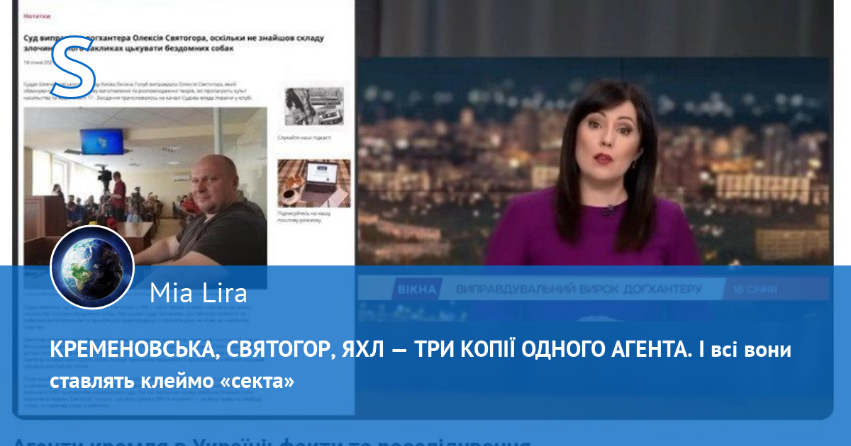 #Кременовська , як і #Яхл, авторка фейкових експертиз проти неугодних для раційського РАЦИРС і ставить на них клеймо «секта». Кременовська так само активно виступає в медіа зі своїми експертними коментарями.