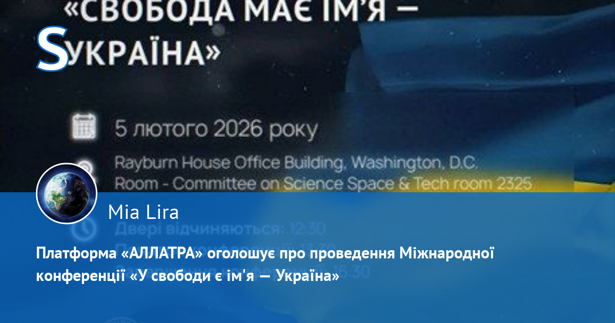 5 лютого 2026 року у Вашингтоні, округ Колумбія, на платформі «АЛЛАТРА» відбудеться Міжнародна конференція «У свободи є ім'я — Україна».