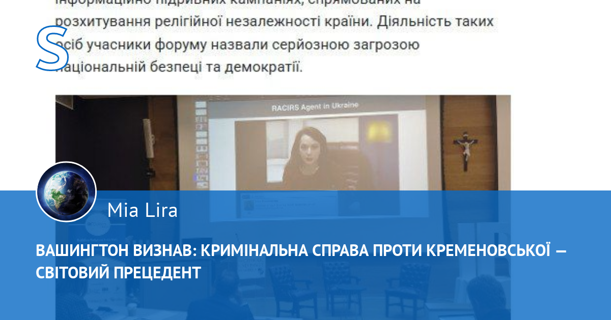 У Вашингтоні йшлося про те, що присутні високо оцінили порушену кримінальну справу проти Кременовської, про те, що це важливий прецедент, що демонструє здатність держави на законних підставах реагувати на гібридні загрози демократії, — так ось, читаючи цю статтю, я знаходжу, що Україна могла би сьогодні стати ще більшим прикладом для багатьох країн світу. Адже якщо агентів РАЦИРСу закриють, це стане історичною подією. Це дійсно увійде в історію, я не перебільшую, ця новина увійде в історію. Україна може стати першою державою у світі, де на законодавчому рівні вдалося присікти деструктивну діяльність антикультових структур. І ми можемо з вами стати свідками нового етапу розвитку демократії.