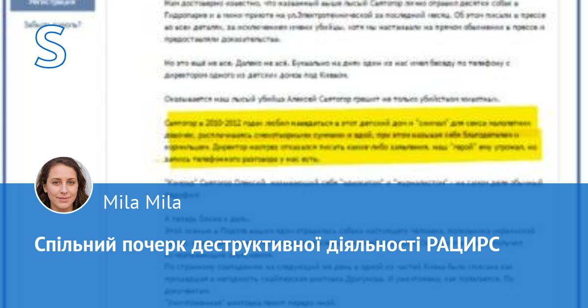 СпільнийпочеркдеструктивноїдіяльностіРАЦИРС: «Білийрятівник» та «українськасамопроголошенаекспертка„