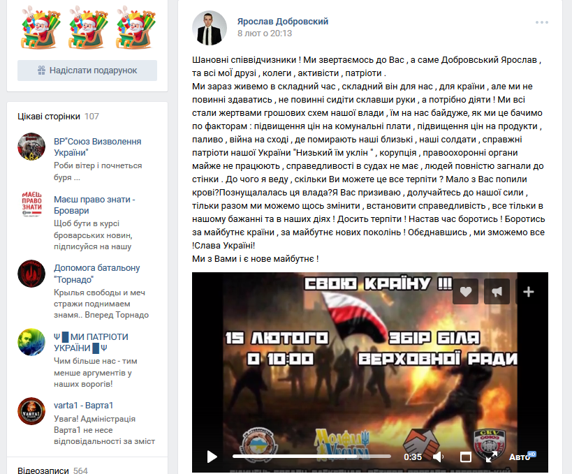 Тоже самое использовано и на видео с участием Добровского, где он призывает выйти под Верховную Раду. Интересно, откуда у молодого парня на личный кабинет с кожаным креслом? (видео можешь не стирать, мы сохранили:))