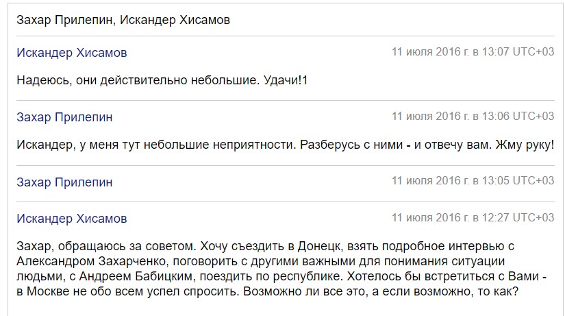 Мне кажется, что после публикации этой переписки Хисамову и его семье понадобится политическое убежище в Украине. Ему в в компании СБУ будет намного безопасней.