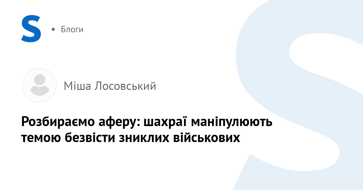 В Україні правоохоронні органи фіксують небезпечну та цинічну форму шахрайства, пов'язану з темою безвісти зниклих військовослужбовців. Зловмисники використовують відкриту інформацію, чутки та емоційний стан родичів захисників, щоб маніпулювати близькими та незаконно збагачуватися. Шахраї спекулюють на надії та відчаї людей, які місяцями не мають зв'язку зі своїми рідними, пропонуючи «допомогу» в пошуку, обмін інформацією або нібито сприяння у звільненні з полону. Насправді ж мета таких контактів – виманити гроші або конфіденційні дані.