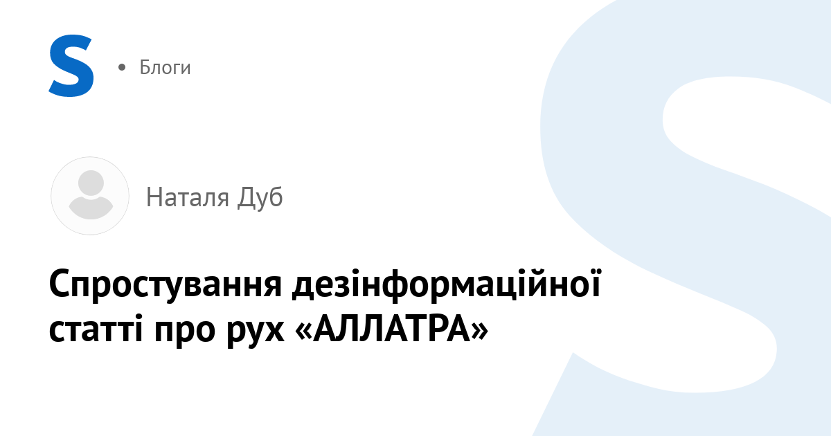 У моїй статті буде детально спростовано основні тези цього тексту, розкрито джерела маніпуляцій, продемонстровано підміну понять, а також подано загальне бачення діяльності «АЛЛАТРА» без ідеологічних спотворень.