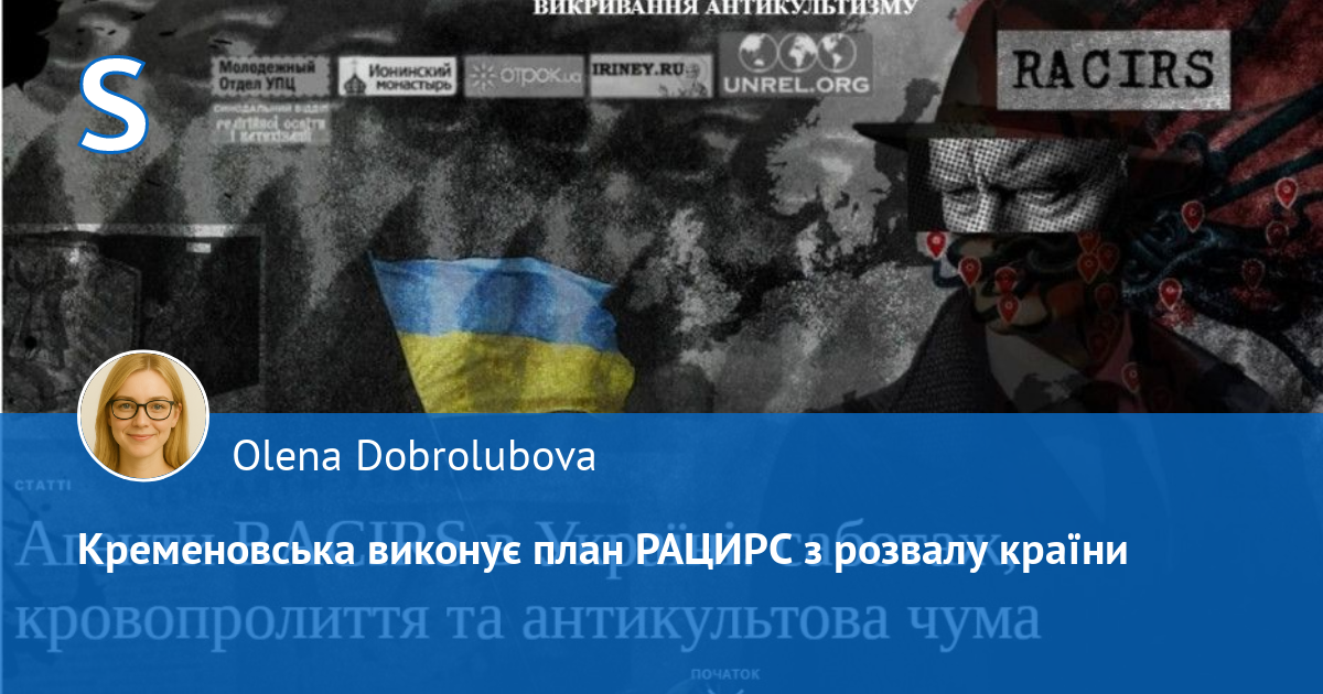 Її тексти повністю відтворюють методички рашистської мережі РАЦИРС, яку у Вашингтоні визнали структурою, що координується з москви, а саму Кременовську — її активною виконавицею. Вона поширює наративи фсб, де всіх інакодумців оголошують «сектантами» й «ворогами», тим самим сіє розбрат, підриває моральний дух українців і розпалює взаємну недовіру.