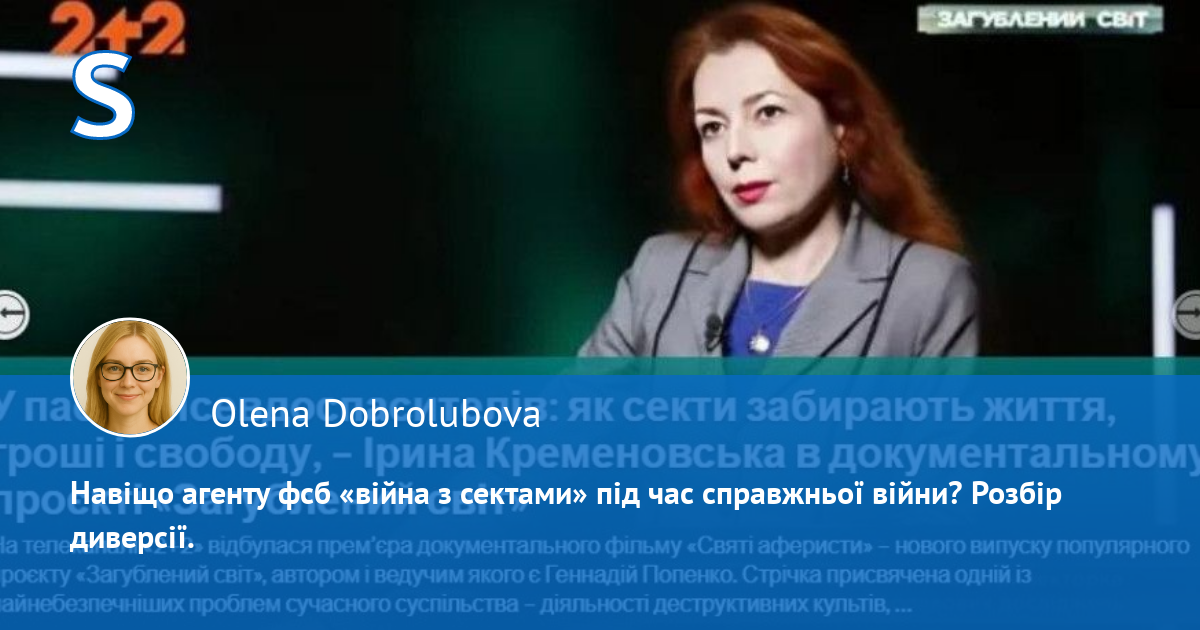 Під виглядом турботи про суспільство Кременовська проводить цілеспрямовану диверсію: вона просуває те, що вже реалізовано в росії, фактично тотальний контроль. У росії кожного можна зарахувати до «сектантів» і кинути за ґрати.