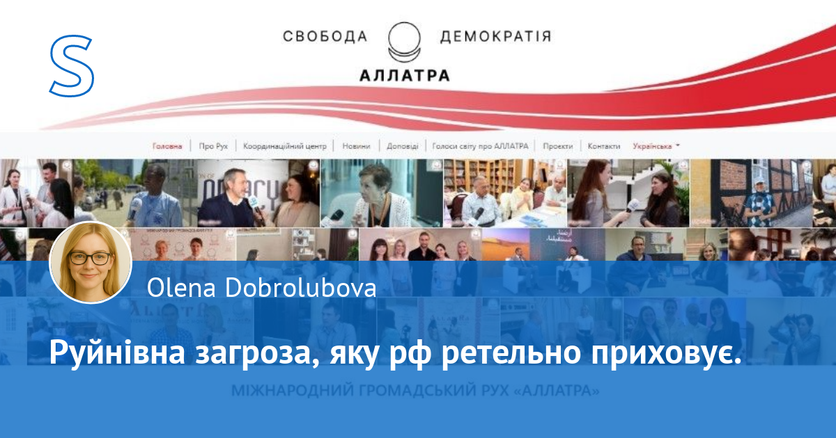 Але ерефія краще знищить тих, хто говорить правду про цю загрозу. З 2023 року АЛЛАТРА в рашці під забороною. Саме за кремлівськими методичками навіть в Україні, рашиські агенти таврують АЛЛАТРА «сектою». Кременовська та Святогор просувають цю маячню в наших ЗМІ. Їм начхати на нас, на тебе, на майбутнє наших дітей!