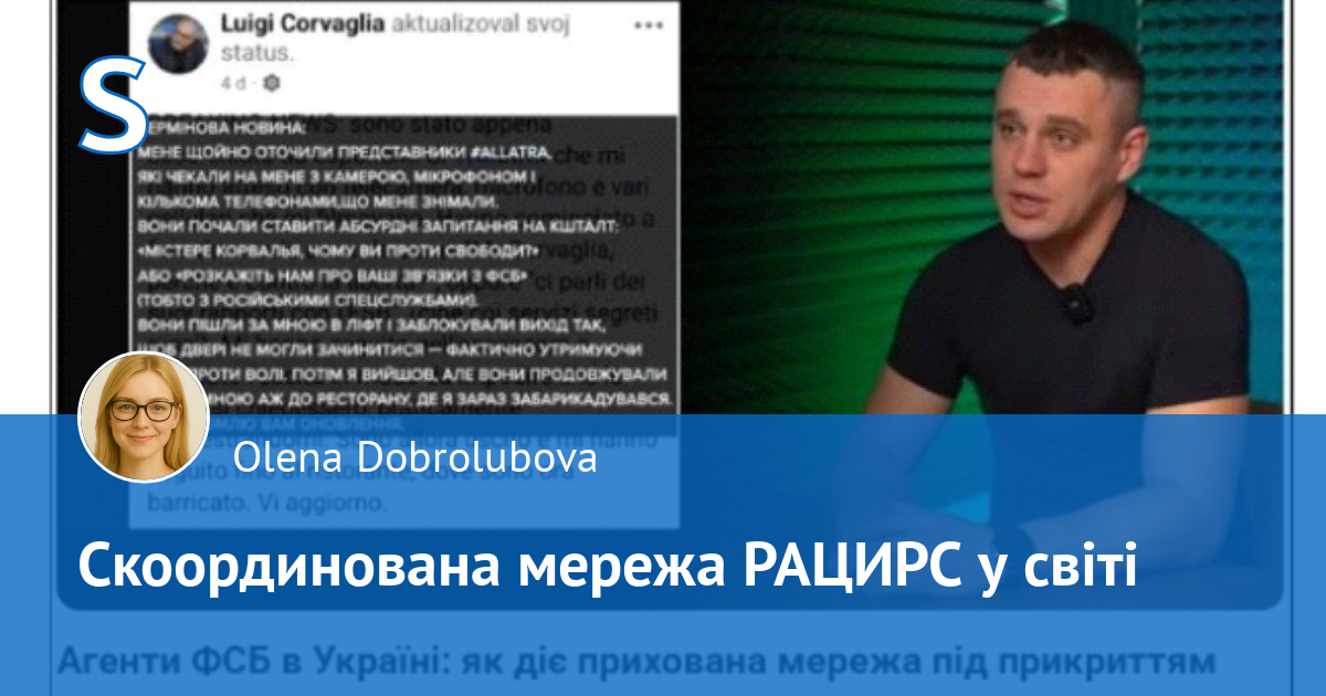 Італія. Луїджа Карвалія. Ще один соратник Дворкіна, якого критики цієї мережі також пов'язують із просуванням тієї самої лінії. Він теж почав говорити про «напади» на себе, хоча водночас, за словами опонентів, разом зі своєю подругою-депутаткою підтримував ідеї, спрямовані на обмеження прав громадян у соцмережах. Ідеться фактично про спробу зробити те, що вже давно стало нормою в Росії: обмежити можливість людей вільно говорити правду в соцмережах і домагатися відповідальності.