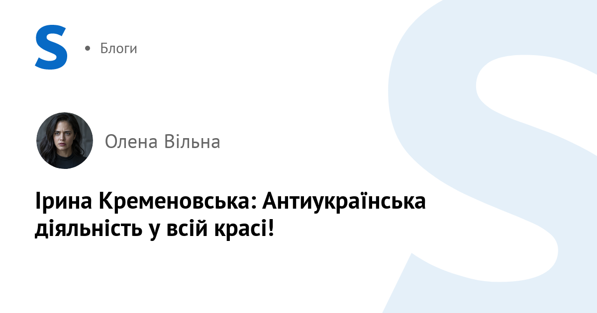 Ну що ж, друзі, ми продовжуємо нашу захопливу (на жаль, зовсім не позитивну) мандрівку слідами антиукраїнської діячки Ірини Кременовської, де я розкриваю вам очі на її підступну діяльність.