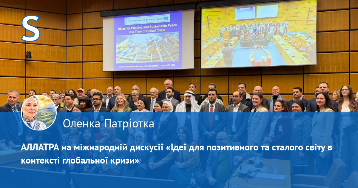 Представники Міжнародного громадського руху АЛЛАТРА відвідали інформаційно-дискусійну зустріч на тему «Ідеї для позитивного та сталого світу в контексті глобальної кризи», яка відбулася 25 березня 2026 року у Віденському відділенні Організації Об'єднаних Націй.