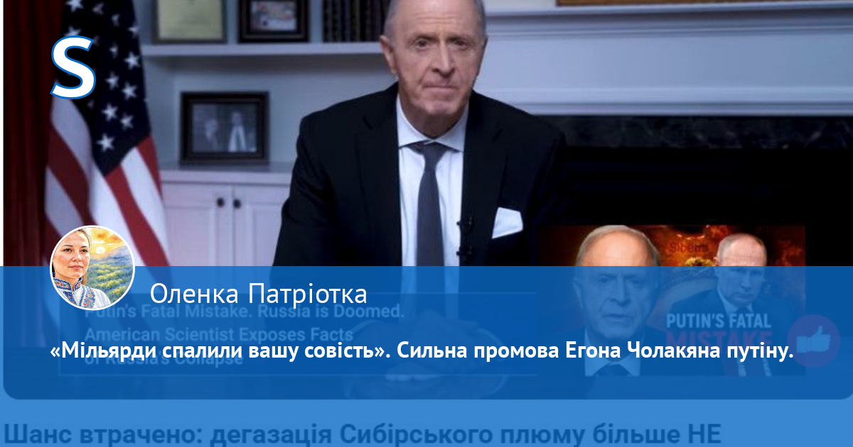 Особисте звернення Егона Чолакяна ло путіна у зв'язку із втраченим шансом на дегазацію Сибірського плюма.
