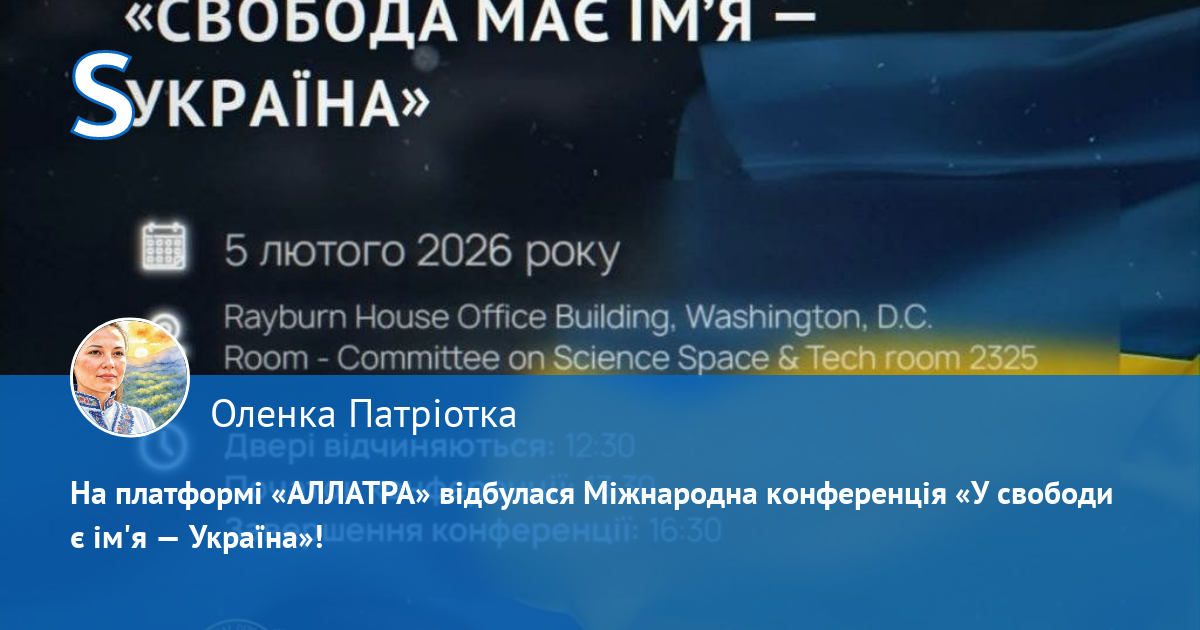 5 лютого 2026 року у Вашингтоні, округ Колумбія, на платформі «АЛЛАТРА» відбулася Міжнародна конференція «У свободи є ім'я — Україна».