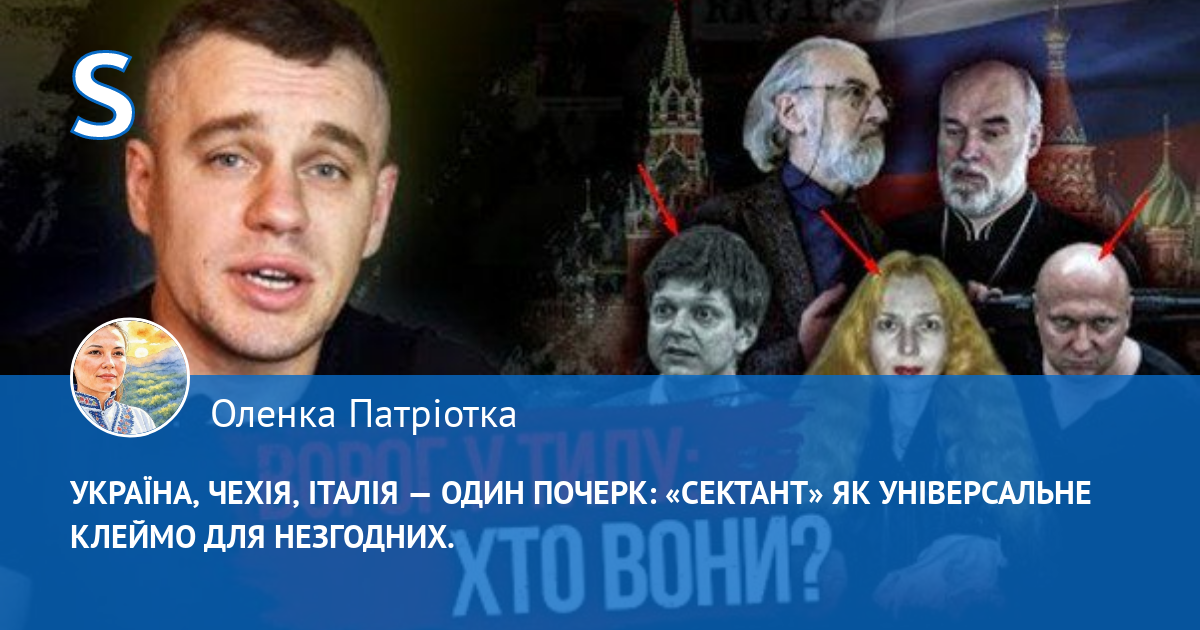 Вона в Україні таврує усіх небажаних кремлю «сектантами». Вона самоназвана брорчиня із «сектами». Саме боротьба із «сектами» — є вказівкою на те, що це агент кремля. Бо саме так вони і діють.