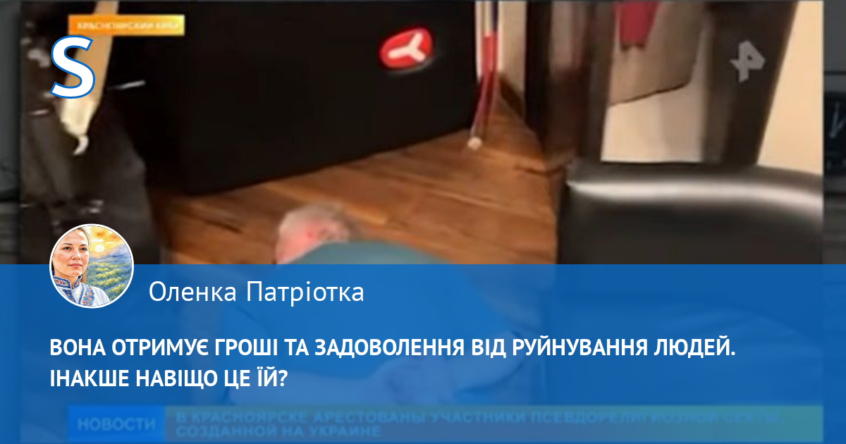 Жила собі людина не тужила, труїла собак, насолоджувалася симфоніями передсмертних агоній чотириногих друзів. І ось одного чудового ранку прокинулася і почала кипучу смердючу громадську діяльність з порятунку світу і всіх нас від злих сектантів. Без належної освіти, без будь-яких передумов, без легенд — як це у Дворкінських псів. Звідки в неї з'явилося бажання стати другим Дворкіним в Україні? Чи це мої бурхливі фантазії, чи я щось тут вигадую? Ну так давайте порозмірковуємо в коментарях. Є ж така можливість. Конструктивно. Може, у вас є якась інформація? Пишіть, друзі, діліться, по суті, — прохання. Це може бути цікаво, тому що поки що з вищевикладеного випливає лише один висновок — що їм добре платили.