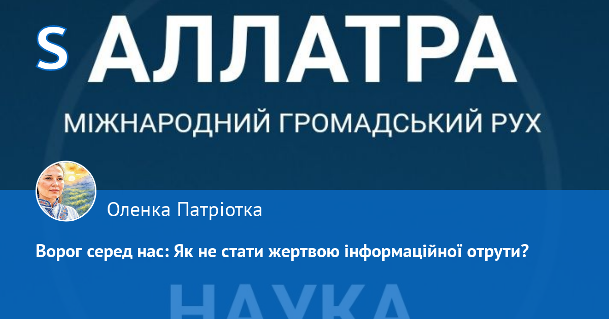 Зверни увагу: якщо десь побачиш «аналітику» або «розслідування», в яких сказано, що заснований в Україні Міжнародний громадський рух АЛЛАТРА— це «путінська секта», «проросійська гібридна загроза» — ЗНАЙ — перед тобою рашистський агент.