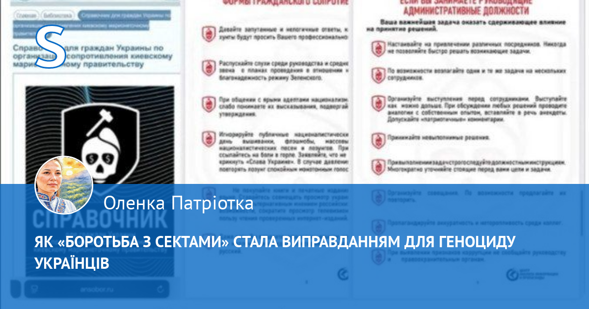 Ми з вами маємо знати, в нашій країні дія мережа така сама, як в рашції. Вони називають себе антикультовими центрами, науковими експертами, правозахисниками, а насправді знищують свободу, маніпулюють судами, переслідують людей і діють на користь kремля. Геть з України всю цю мразоту, всіх цих копрофілів, фальшивих експертів і садистів. Ми вільна країна. Ми відстоюємо правду. І ми не дамо цим виродкам топтати наш тил.