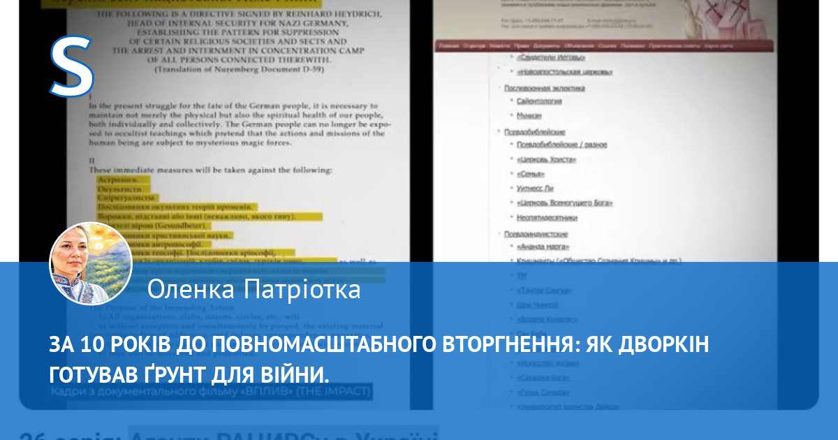 У відповідь на це антикультова кампанія набула нового звучання. Україну стали представляти не просто як сектантську державу, але як нібито загрозу традиційним цінностям руського православ'я. Схожі формулювання могли напряму пов'язувати вже релігійне і політичне, формувати обґрунтування для військового вторгнення. Отже, антикультизм у російській практиці виявився не інструментом захисту суспільства від маніпуляцій, а механізмом — підкреслюю, механізмом ідеологічної мобілізації для розв'язання великої загарбницької війни.