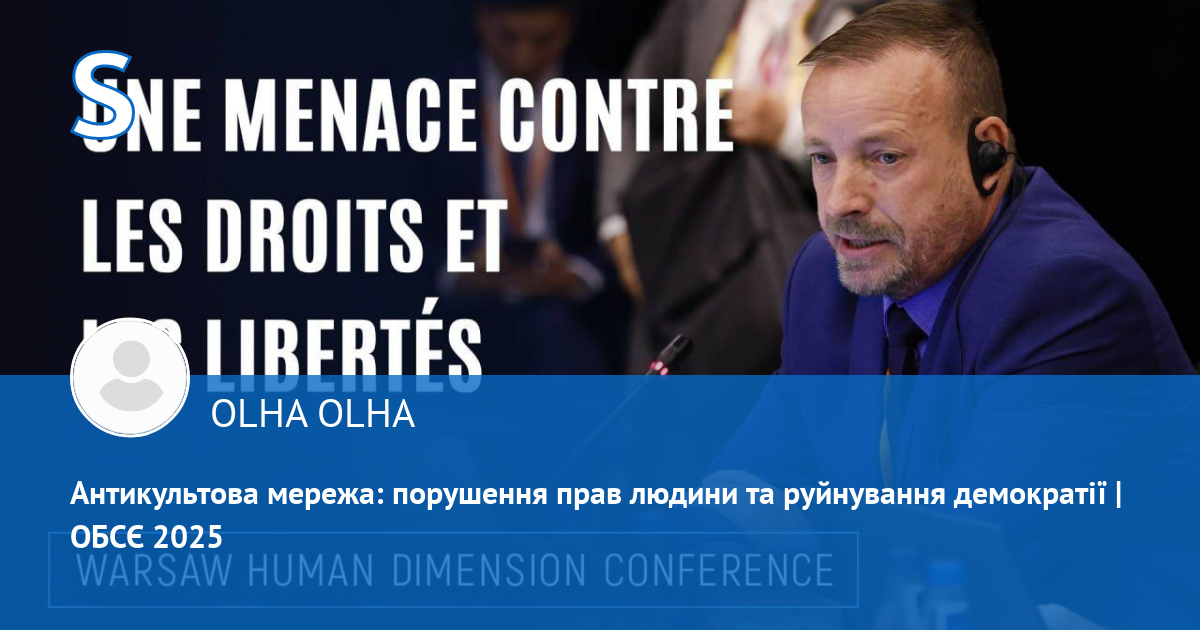 У жовтні 2025 року на Конференції ОБСЄ з питань людського виміру у Варшаві прозвучала важлива заява від представника Міжнародного громадського руху «АЛЛАТРА» з Чехії, Душана Валечека. Тема виступу — «Антикультова мережа: порушення прав людини та руйнування демократії».