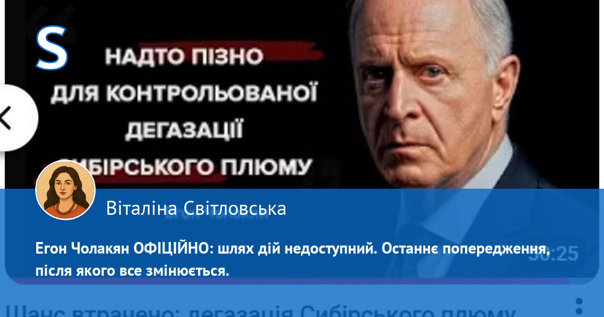 Цитата з відео на АЛЛАТРА ТБ ЛЬВІВ «Шанс втрачено: дегазація Сибірського плюму більше НЕ ДОПОМОЖЕ | Егон Чолакян» :