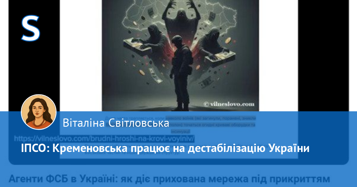 Чому Кременовська досі спокійненько на своєму сайті Вільне слово портал Говори критикує Президента України в той час, коли йде війна? І жодного слова немає на критику хуйла, раши, рпц, яка благословляє ракети на наших дітей і матерів. Чому? Чому Кременовська досі не несе відповідальності згідно чинного законодавства?