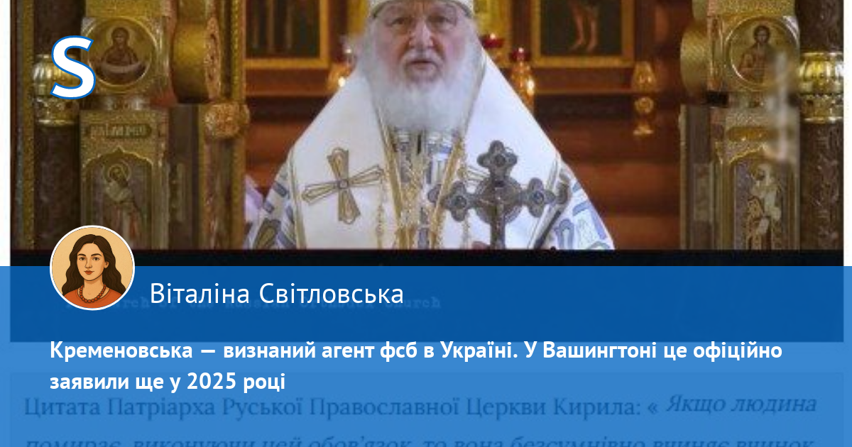 Тобто Кременовська є відкритим агентом фсб в Україні й це визнано на форму у Вашингтоні ще у 2025 р.