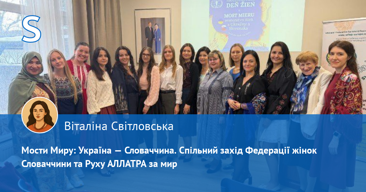 14 березня у Братиславі (Словаччина) відбувся міжнародний захід «Мости миру», організований Федерацією жінок за світовий мир Словаччини спільно з представницями Міжнародного громадського руху «АЛЛАТРА». Ініціатива об'єднала жінок з різних країн, зокрема з України та Словаччини, для зміцнення діалогу, взаємопідтримки та гуманітарної співпраці.