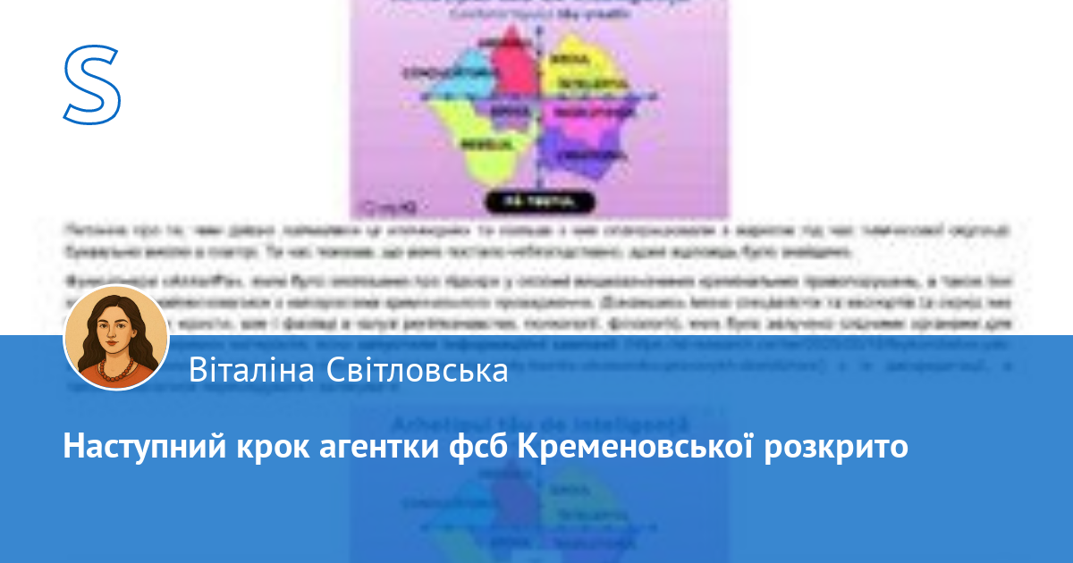 Кременовська готує масове фальсифіковане звинувачення української патріотичної організації у «проросійськості». Її мета — знищити довіру до АЛЛАТРА, яке несе позитивний образ України у світі, та показати нашу державу як «нестабільну» та «проросійську». Це — частина гібридної війни фсб.