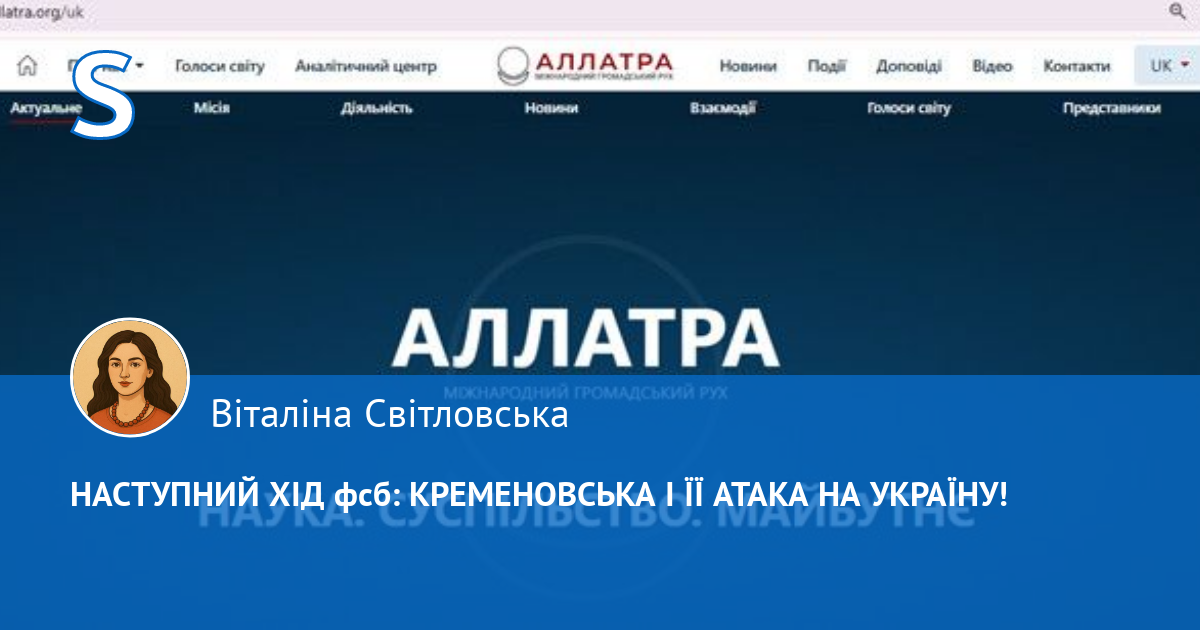 Вона буде намагатися «прикрутити» до «АЛЛАТРА» будь-кого, хто ніколи не був волонтером АЛЛАТРА. Кременовська вишукує лояльних до рашки, бо сама служить рашці та фсб, й буде писати у своїх фейкових експертизах, що це — волонтери АЛЛАТРА. Так вона намагається розхитати ще більше Україну, направити одних людей проти інших, скриваючі, що все це робить лише для того, щоб рашка повністю заволоділа Україною!