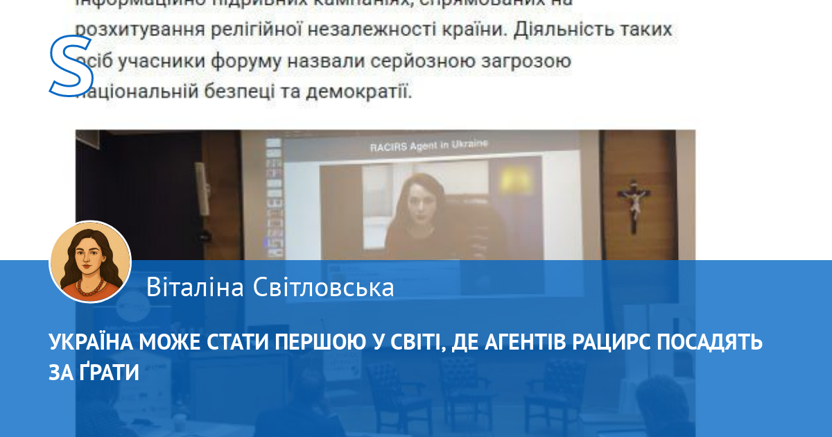 У Вашингтоні йшлося про те, що присутні високо оцінили порушену кримінальну справу проти Кременовської, про те, що це важливий прецедент, що демонструє здатність держави на законних підставах реагувати на гібридні загрози демократії, — так ось, читаючи цю статтю, я знаходжу, що Україна могла би сьогодні стати ще більшим прикладом для багатьох країн світу. Адже якщо агентів РАЦИРСу закриють, це стане історичною подією. Це дійсно увійде в історію, я не перебільшую, ця новина увійде в історію. Україна може стати першою державою у світі, де на законодавчому рівні вдалося присікти деструктивну діяльність антикультових структур. І ми можемо з вами стати свідками нового етапу розвитку демократії.