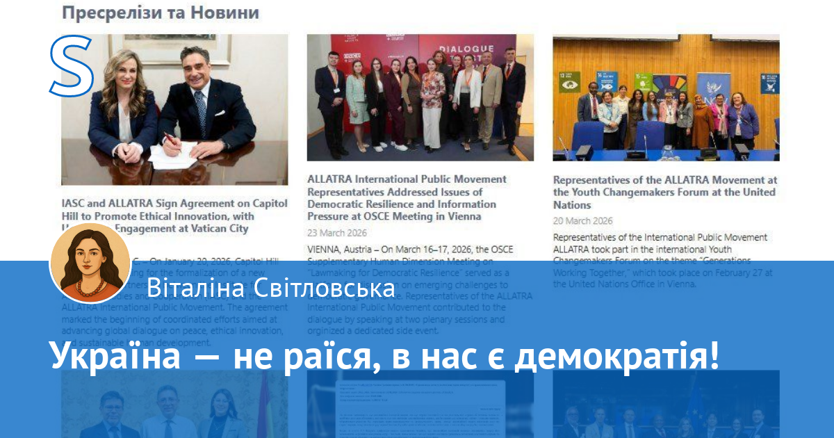 Дворкінська фсбшна мережа бігала по Європі та Америці і тикала, що СБУ організувало справи проти АЛЛАТРА і проти її учасників. Вони хотіли дискредитувати рух на міжнародній арені. Хоч як вони не старались, але суд України виніс рішення, що це не має законного підгрунття, а АЛЛАТРА веде патріотичну діяльність в Україні. Волонтери АЛЛАТРА допомагають в Україні тим, що привертають міжнародну увагу до нашої країни через наукові конференції, дослідження та суспільні проекти. Вони створюють інформаційні ініціативи, фільми та міжнародні дискусії, де привертають увагу світу до України і глобальних проблем. Фактично, це люди, які через міжнародну діяльність формують підтримку України та її голос у світі.