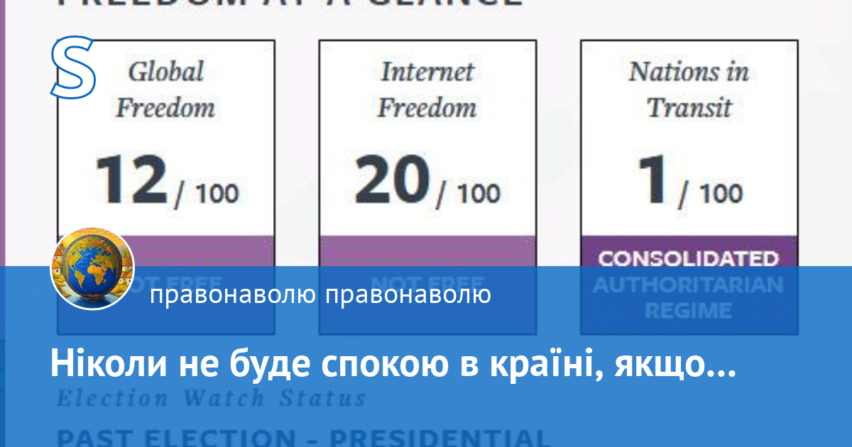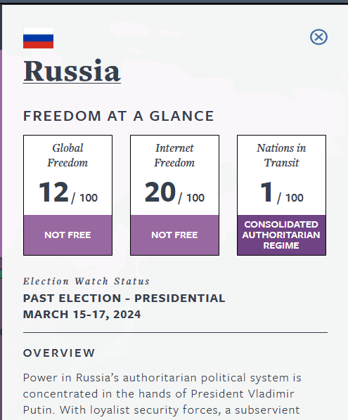 Рейтинг свободи в росії за даними агенства Freedom house за 2024 — 12 зі 100.