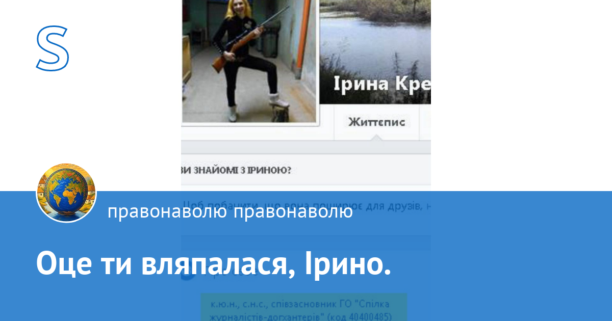 скрін частини сторінки у соц.сережі Ірини Кременовської ( як вам спілка журналістів-догхантерів?)