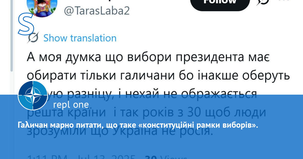 Замість ѵідповіді Гаλичанин верзе подібну кацапориλу маячню: «я — ЗА вибори, але вони мають проводитись не згідно хотєлок путлєра і Губаєва, а відповідно до Конституції» -- тобто як хочуть Вкраїнці це «не за Конституцією», тіλьки як вирішать Гаλичани -- за Конституцією.