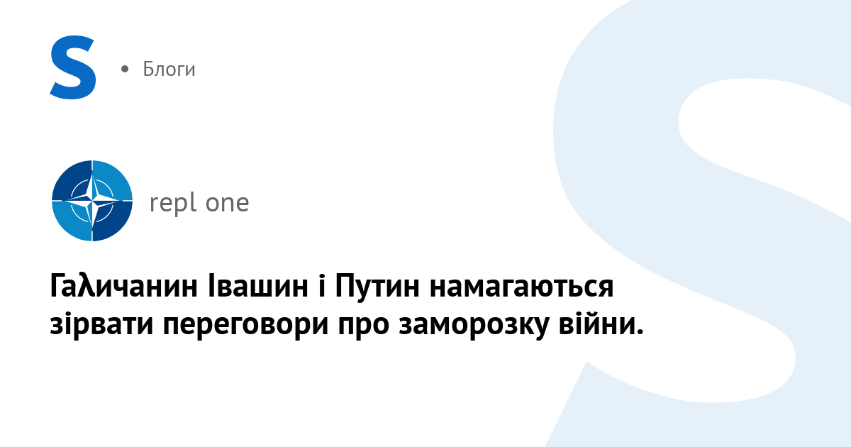 Гаλичанин Івашин як мінімум з кінця 23-го року безперервно верещить, що переговори на умовах України це зрада, тому-що моλяв це Путин хоче заморозки, а ѿже всі Гаλицькі патріоти проти заморозки, і λише кремλеботи «кажуть як Путин».