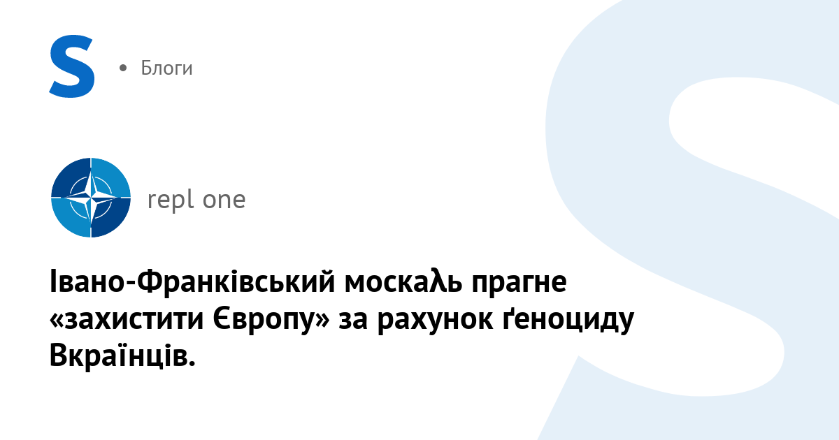 Можна бачити, що Івано-Франківський москаλь приписує іншим те чого прагне сам: ґеноциду Вкраїнців. За ЙОГО "λогикою" Європа має підтримувати знищен͡ня Вкраїнців, "щоби росія не напаλа на Європу". Це ЙОГО ставλен͡ня до Вкраїнців.