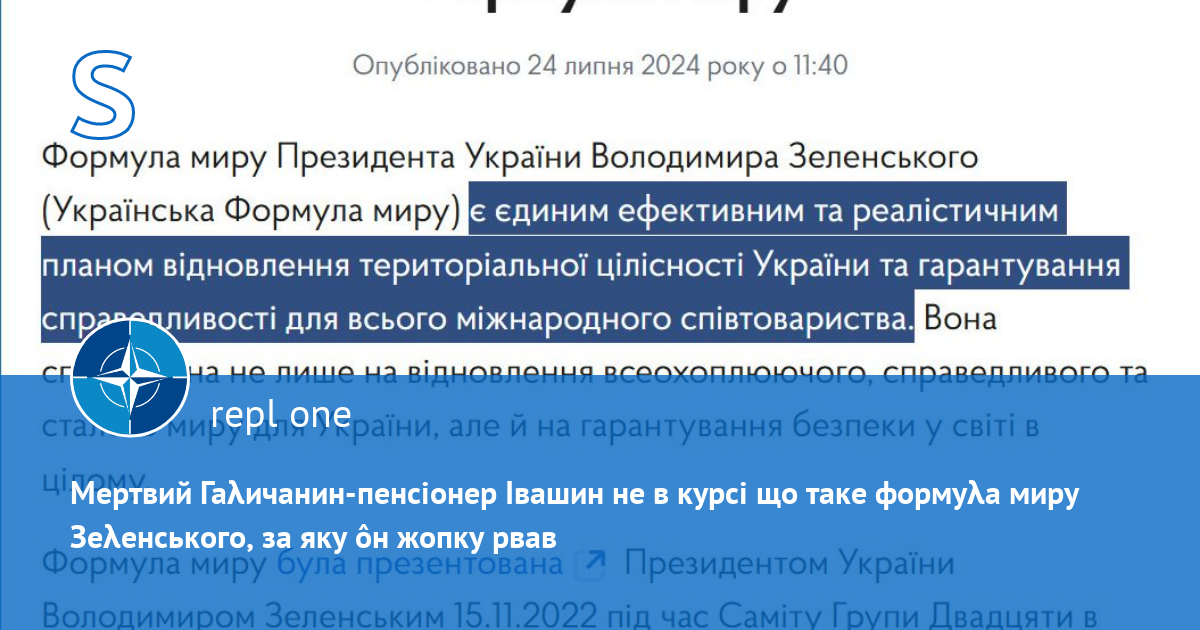 Ѧк я й казав, мертвий Гаλичанин-пенсіонер Івашин збирається "втЫлювати в життя" мертву формуλу миру Зеλенського, тому ôн не допустить заморозки війни.