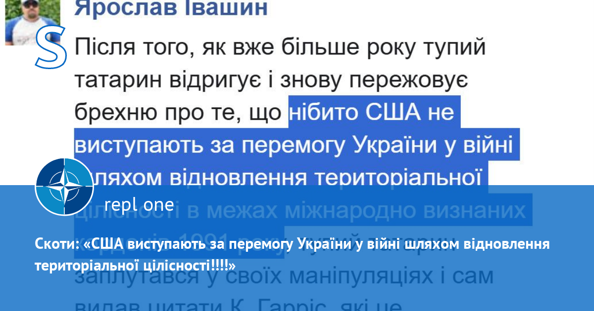Порохоскот Івашин, расовий Гаλицький рагуλь з Ірино-Фаріонівська повторював подібну маячню навіть пісλя обран͡ня Трампа, який однозначно казав, що його мета -- зупинити війну, а не «перемога Вкраїни».