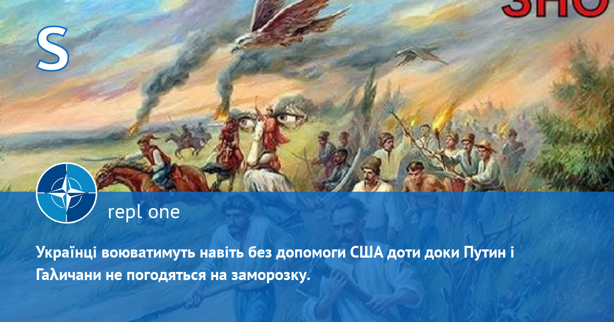 Зрозуміλо, що якщо Хуйλо з Гаλичанами не погод͡жується на заморозку війни, то Вкраїнці вестимуть війну стіλьки потрібно, навіть без допомоги США, бо „завдяки“ Гаλичанам Україна не могλа піти на заморозку війни раніше, з допомогою США: