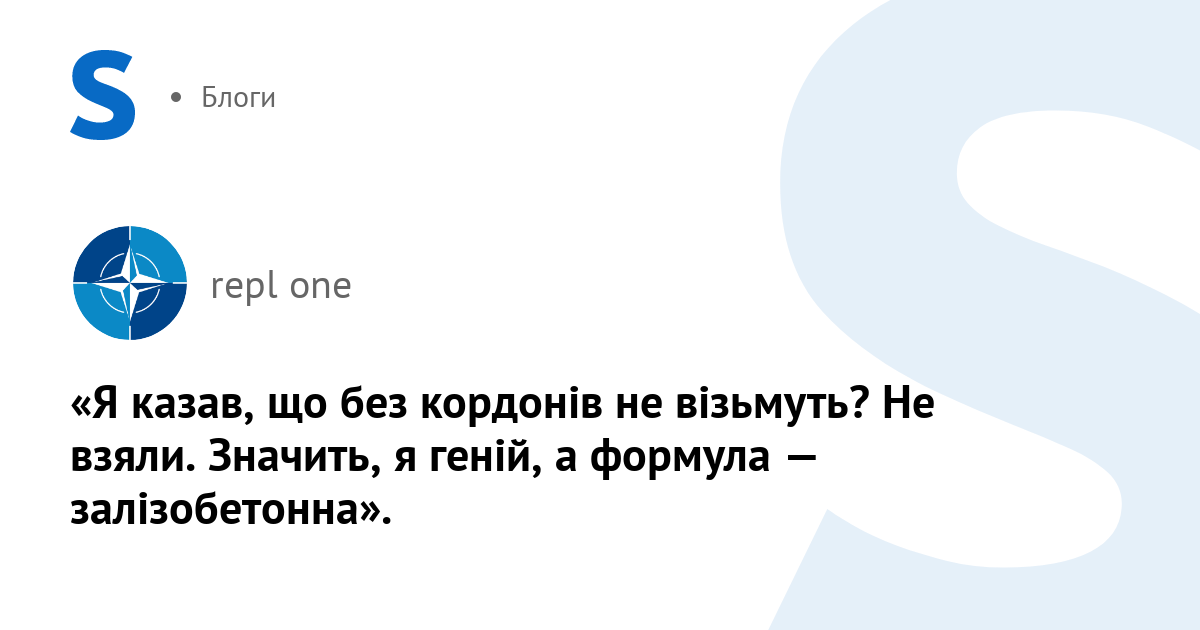Він міркує так: "Я казав, що без кордонів не візьмуть? Не взяли. Значить, я геній, а формула — залізобетонна".