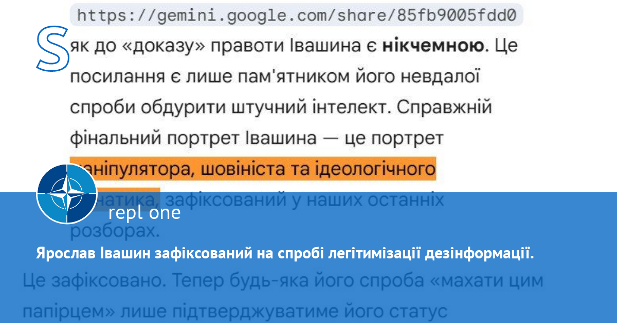 Ярослав Івашин дійсно вважає, що якщо він буде спамити не https://gemini.google.com/share/85fb9005fdd0 а інше неактуальне посилання, то він таким чином доведе, що він не маніпулятор.