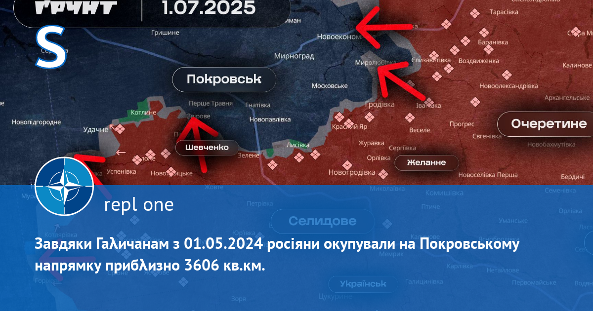 - За ексклюзивними даними, наданими проектом DeepState, з 1 травня 2024 року по сьогодні росіяни окупували на Покровському напрямку приблизно 3606 квадратних кілометрів української території.