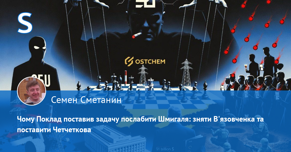 За наявною інформацією, перший заступник голови СБУ Олександр Поклад поставив чітку задачу: максимально послабити першого віцепрем'єра — міністра енергетики Дениса Шмигаля. Для цього планується зняти з посади заступника міністра Олександра В'язовченка і замінити його на Четчеткова. Стратегічна мета — перехопити ініціативу в усіх проєктах відновлення енергетики та взяти під контроль їхнє фінансування. Далі план передбачає поступово демонструвати неспроможність Шмигаля впоратися з викликами і створити умови для його зняття та заміни на підконтрольну групі, пов'язаній з Дмитром Фірташем, людину.
