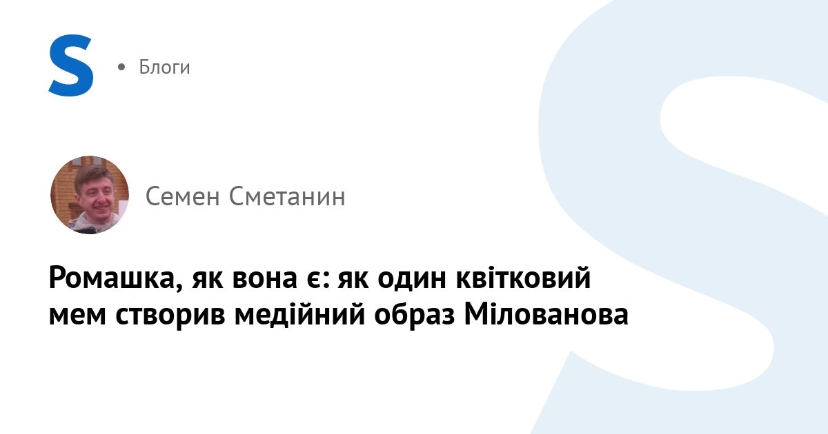 Усе почалося, як завжди, з випадковості. Фотографія Мілованова з дитячою посмішкою та ромашкою у вусі з'явилася в медіапросторі у 2019-му році — у той момент, коли його ім'я щойно увійшло в урядові списки. Професор економіки, радник, реформатор, керівник Київської школи економіки… І тут — ромашка.
