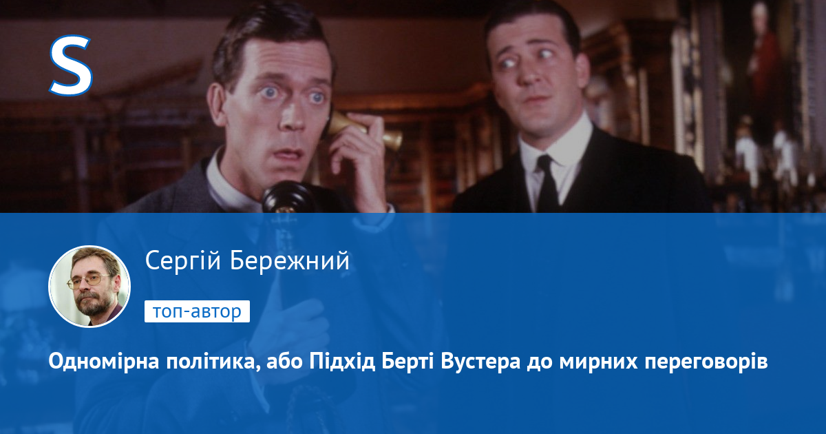 А вважати інакше творчий колектив Білого дому не може, бо їхній шеф бачить ситуацію саме так, в одному вимірі. І спроби розсунути йому горизонти закінчуються тим самим, чим спроби Джівса привести до тями Вустера — "Так, але Путін сказав, що теж хоче миру, і в нього такі чудові вії".