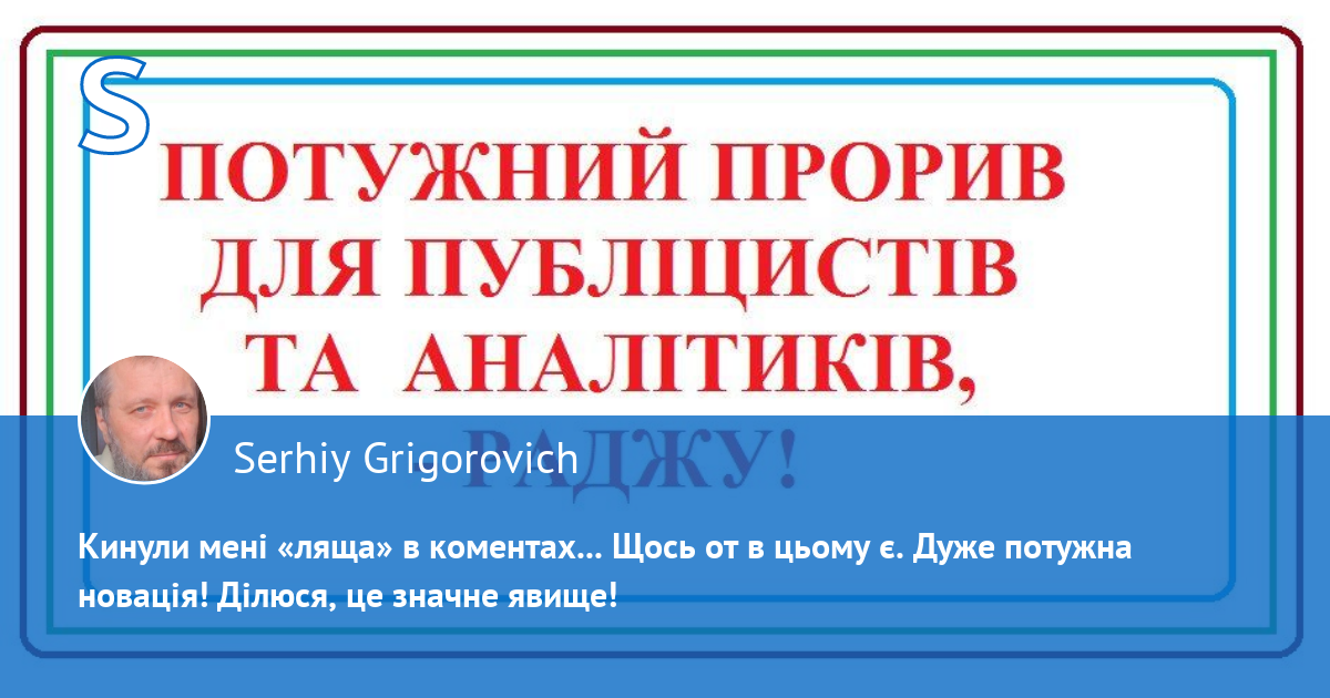 Кинули мені «ляща» в коментах... Вразило! В цьому є дуже потужна новація! Розумним людям раджу познайомитися з попереднім текстом і цим. Ділюся, це — значне явище!