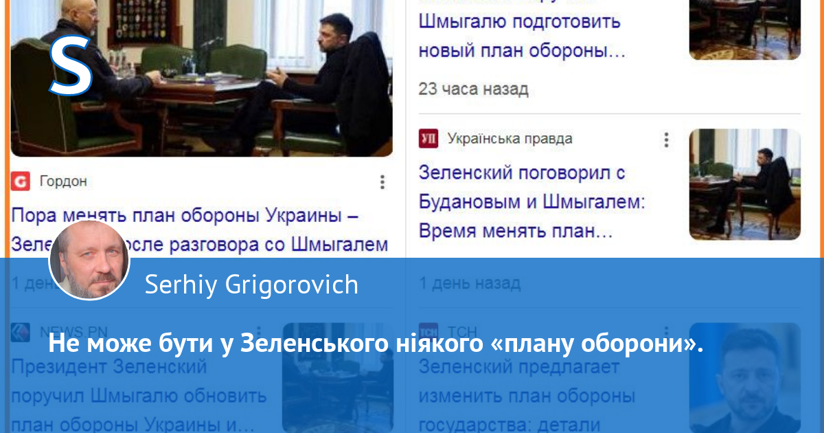 І до речі, про «ПЛАН ОБОРОНИ», окремо передайте Зеленському, що його оточують люди, які не знають навіть, які документи як мають називатися. От буквально тільки що вся країна відсміялася над «планом-28», який виявився не планом а «рамкою»-28-19, який не є ще й рамкою весільних фотографів-”слуг" незрозуміло якого "народа". "План оборони" — це просто дебільна оксюморонна назва від людей, які не знають значення цих слів. Оборона — це військові реакції на дії атакуючого ворога. Оборона не планується, а реагує на дії агресора. Бо навіть дітям зрозуміло, що ворог намагається кожен раз атакуючі дії робити неочікувано, у невідомий час, і щоб ми не знали де саме. По-друге, природа оборони держави — вона така, що треба робити не план, а списки одночасного виконання дуже багатьох дій та робіт... Дуже багато дій має йти паралельно, незалежно одне від одного. Тому таке не дуже-то відноситься до поняття "план". Бо план — це тільки саме упорядкований в певний порядок список дій. Хоча кожна така під-дія чи під-проект можуть мати свої "плани-графіки" та "плани-схеми" нижчого, підлеглого рівня.