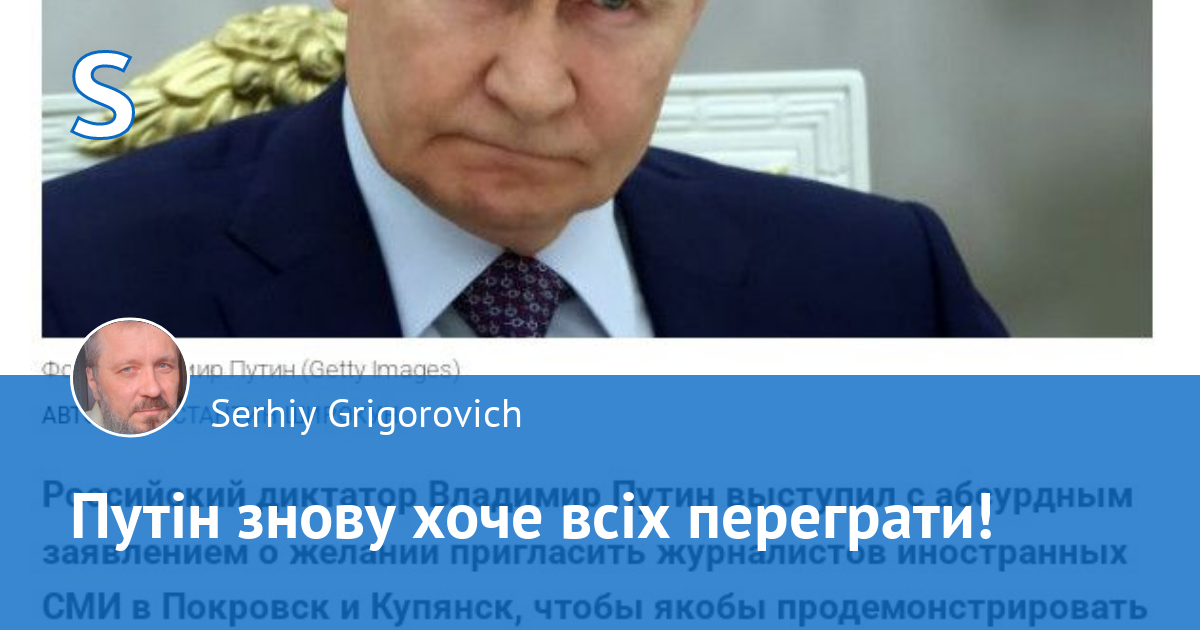 Хоче призупиночку вогню хоч на декілька годин. Вже в нього надія не на Трампа, а на журналістів. Пропонує об'їхати всіх бомжів у кишках і пальцях навколо Покровська і Куп'янська разом з журналістами, щоб показати, що вони «оточили» ці міста!