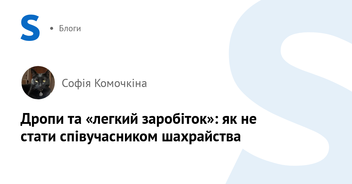Людей, яких залучають до таких схем, називають дропами або «грошовими мулами». Це особи, які свідомо або через необізнаність дозволяють використовувати свої банківські рахунки для переказу коштів, здобутих злочинним шляхом. Через картки дропів проходять гроші від онлайн-шахрайств, кіберзлочинів, незаконних фінансових операцій, а іноді й від торгівлі наркотиками. Для злочинців дроп — лише інструмент, спосіб заплутати фінансові сліди та уникнути відповідальності. Для правоохоронців же саме власник картки є першою і найбільш очевидною ланкою злочинного ланцюга.