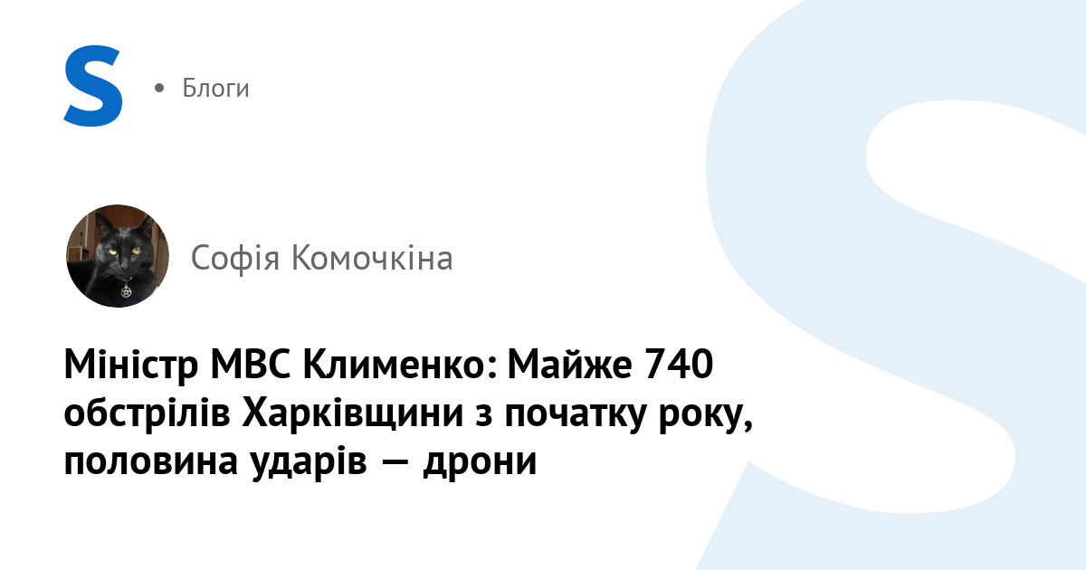 Міністр МВС Клименко: Майже 740 обстрілів Харківщини з початку року, половина ударів — дрони