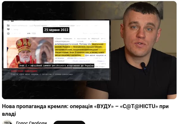 Цитую вам з горе- статті: "питання в іншому. Чи існує зв'язок між можливими окультистськими переконаннями представників влади і політикою держави щодо Української православної церкви? Так, з одного боку, політика щодо УПЦ може пояснюватися геополітичними міркуваннями і вимогами до розриву з Московським патріархатом в умовах війни. З іншого боку, форма і методи цієї політики викликають питання"
